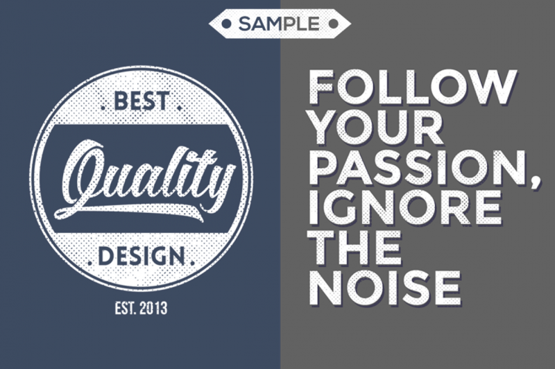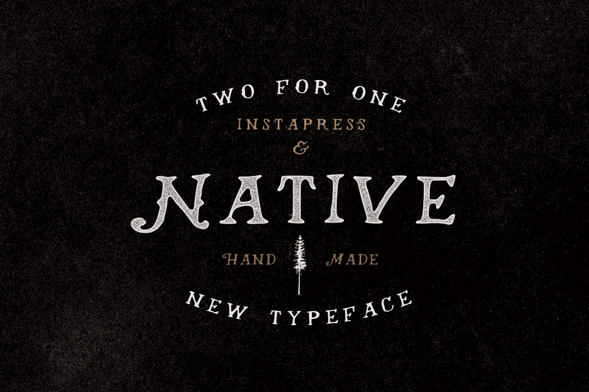 Native typeface comes in TTF format. It was inspired by the lettering that has been popularized by various lettering artists over the last 4-5 years. Originally a take on an Americana style of lettering, Native screams “Whiskey Label”, but will look great on anything from a type based logo to Apparel Design. This is my first font and hopefully first of many. Not only does this include Native TTF, it also includes a Photoshop Action called “Instapress”. This is a personal action I’ve been using on my own designs for a while. It comes with a PSD file that let’s you know how to size your artwork for the Action to work the way it works for me! It comes with 3 different actions: Instapress Thin, Instapress Medium, Instapress Thick. All made to work on different font weights. Feel free to try all 3 to see which one fits best with your artwork. It was made on CC & worked great on CS6 as well. Works with Vector artwork & Transparent PNG.