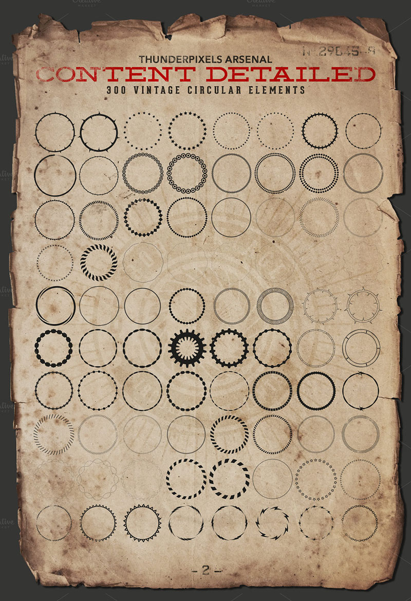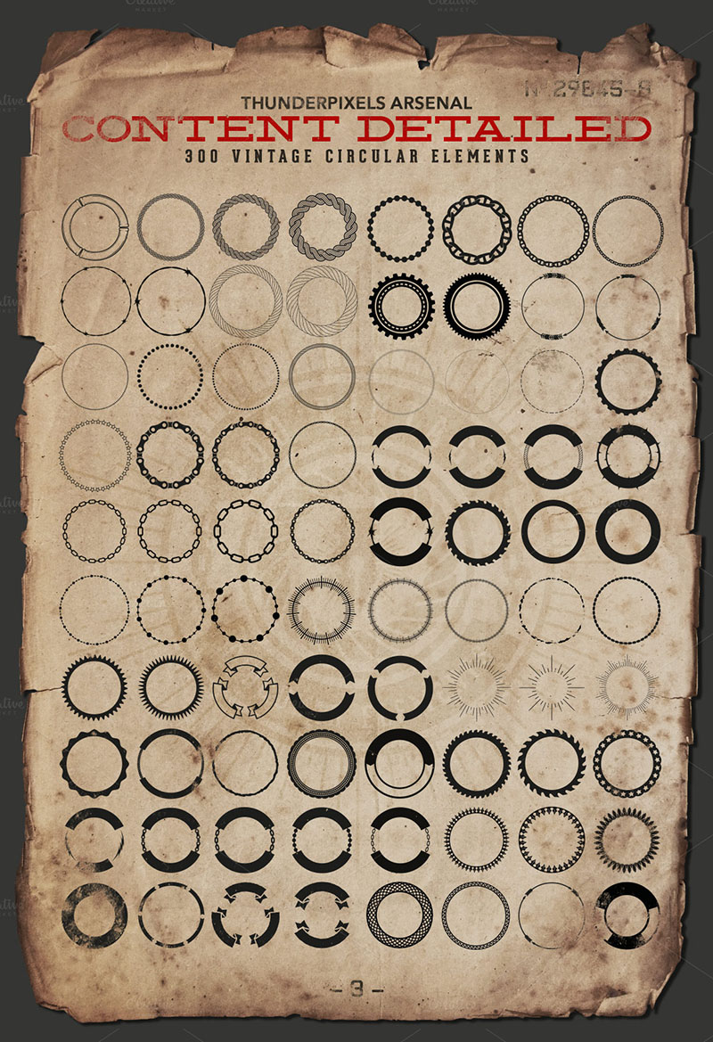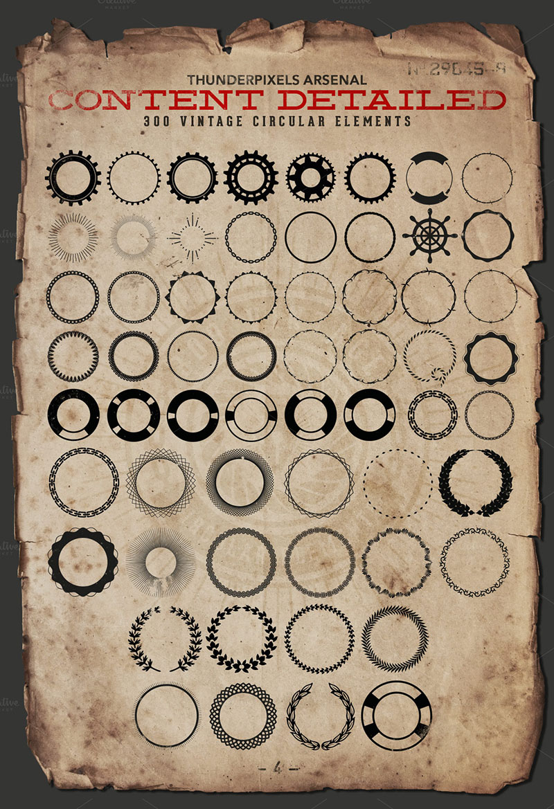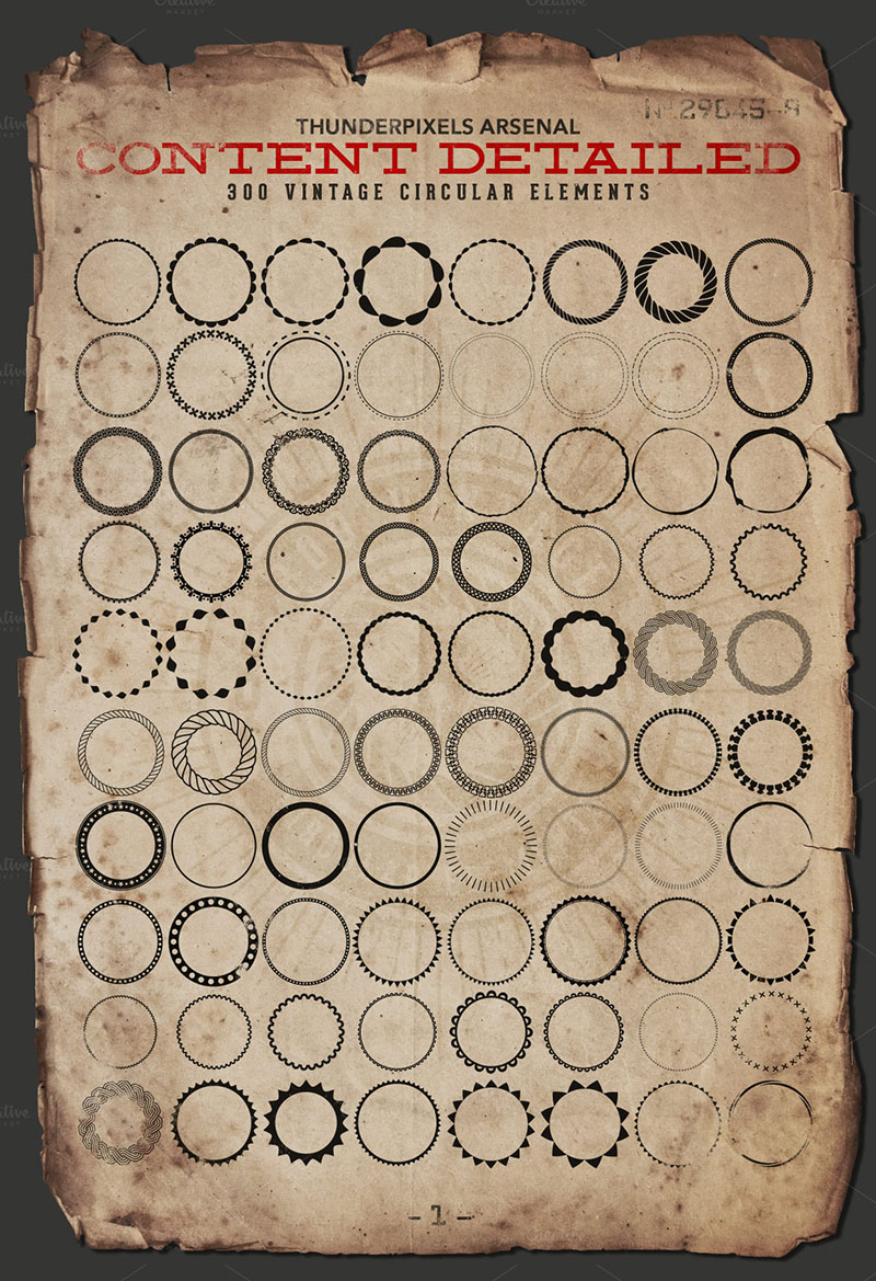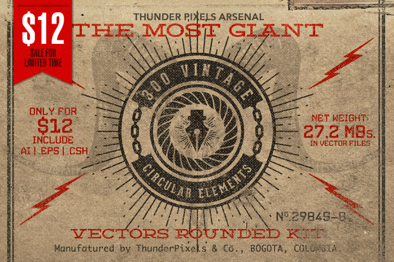 This is the first issue of Giant Box, a pack with 300 circular vector elements useful for creating more than 1000 vintage badges, stamps, seals or labels in vintage style.