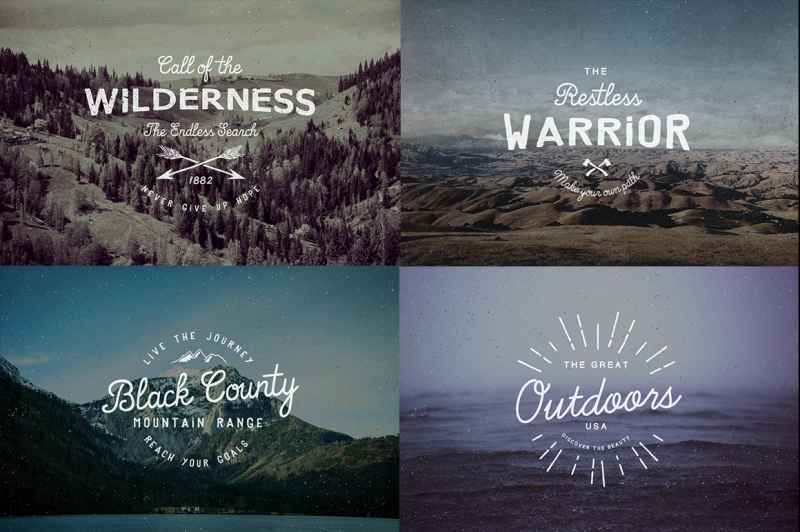 Logos from the Great Outdoors. Inspired by nature. Edit the text with your own copy and boom you have your own vintage outdoor logo.