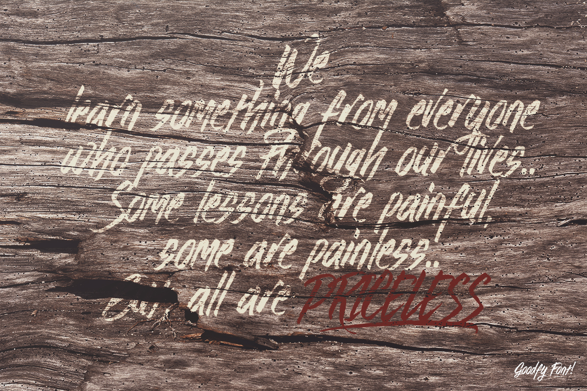 Goody is a quick brush typeface based on the original lettering using brushpen. This font is designed for handwriting design, photography, t-shirt or everything who need quick brush feel and works good for Uppercase and Lowercase too.