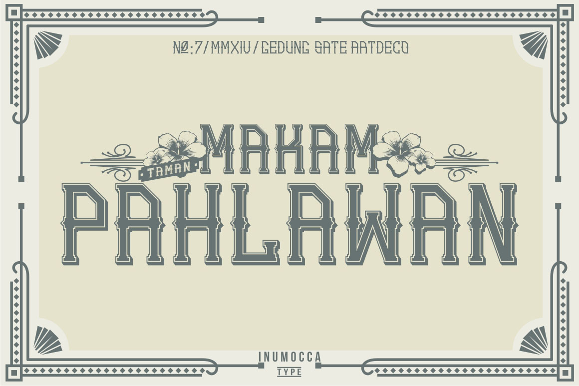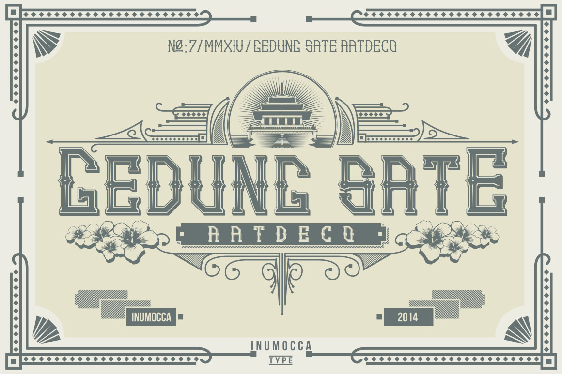 Gedung Sate Artdeco inspired from Ornament,Building and architectural style of Gedung sate Building in Bandung,West Java, Indonesia. Its really great font for your band, company, label,clothing company, vintage or classic stuff…