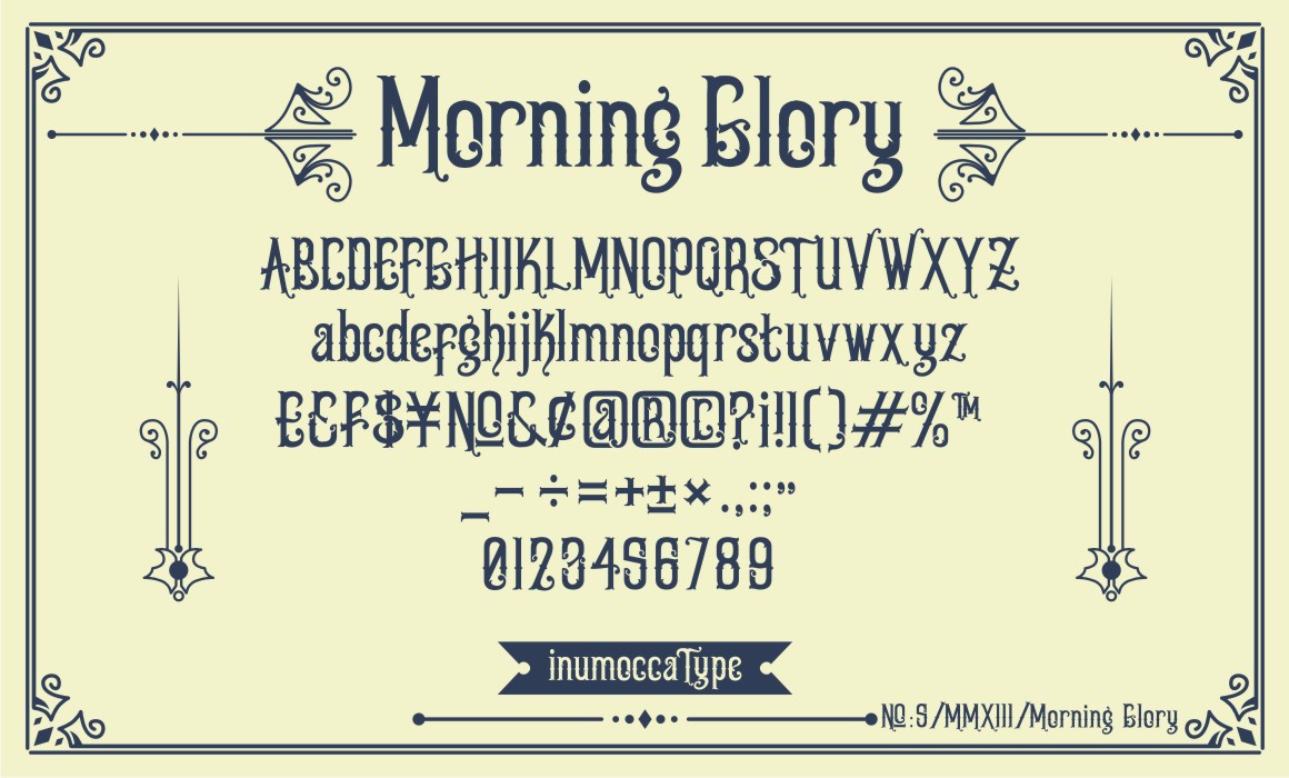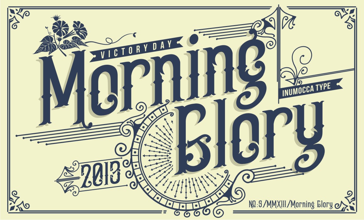 Morning Glory inspired from Victorian age, take a culture of fashions, politic and art its really great font for your band, company, label, clothing company, vintage or classic stuff…