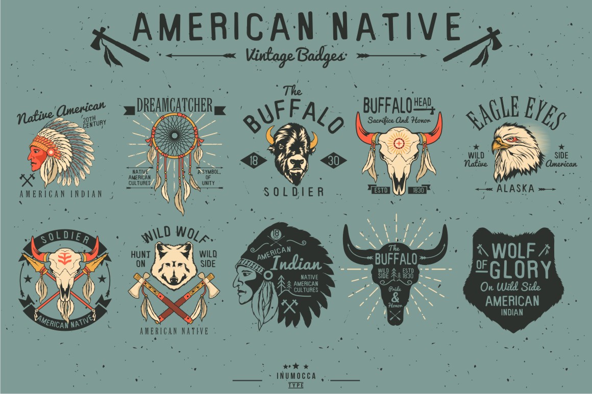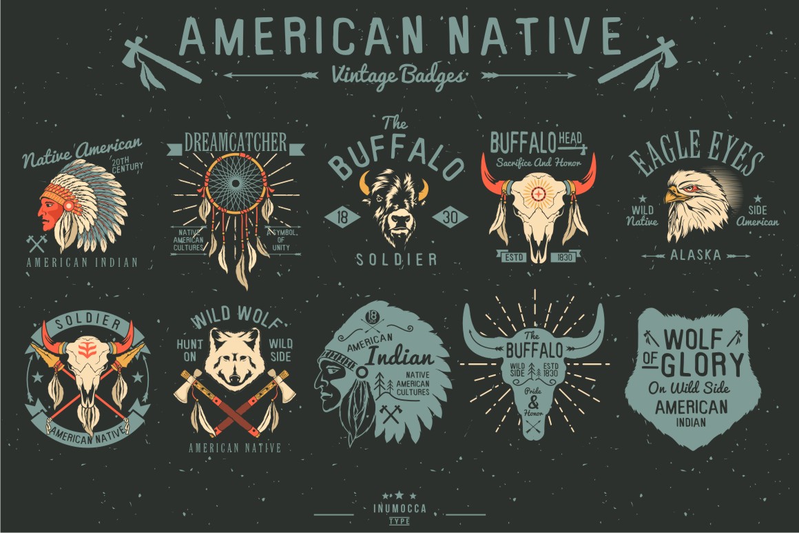 10 Native American Vintage Badges its really great for your clothing, your brand,logo, signs , tshirt, poster…