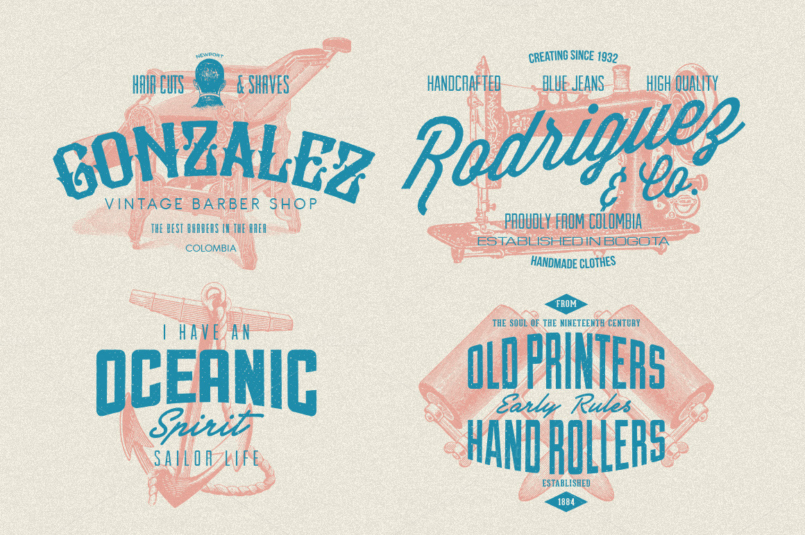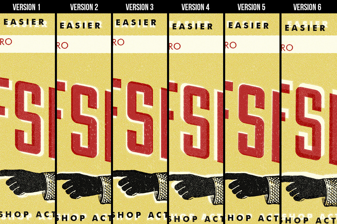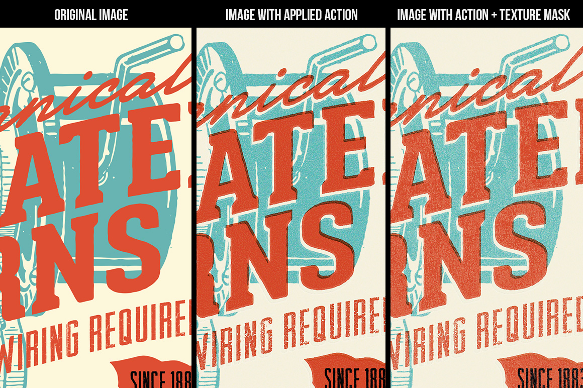 Back to the past has never been easier. We’ve created a little old offset printing machine that reminds us how hard it was to achieve a perfect print registration through proper alignment of printing plates in a press. Although this is already solved, the aesthetics of that time is still inspiring, the displacement and texture of inks is a difficult memory to leave in the past. With this Photoshop Action you can generate a vintage look to almost anything: images of vectorial appearance or spot colors, vectors and typographic treatments.