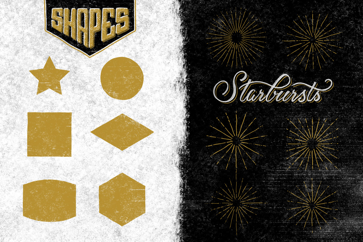 - 14 custom font families, 142 logo/badge templates, 100s of effects,actions and vector elements!