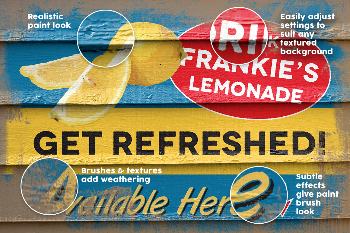 Sign Painter’s Studio is a smart PSD which uses some of Photoshop’s most advance features to make your work look like it’s been hand painted on any textured surface…with just a few clicks!
